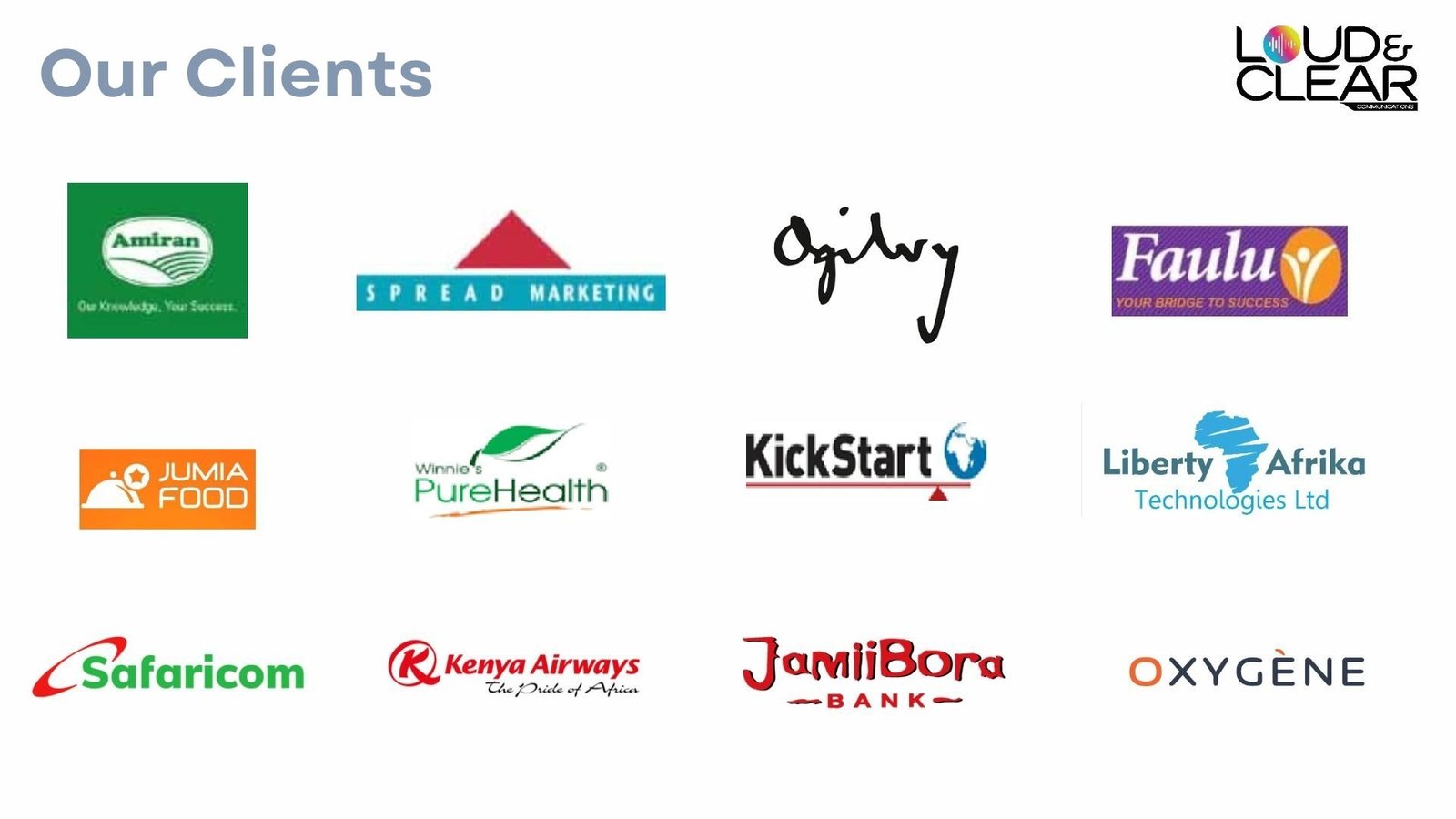Loud and Clear Communications Limited is a Kenyan owned media consulting company, duly incorporated under the Companies Act Cap 486.